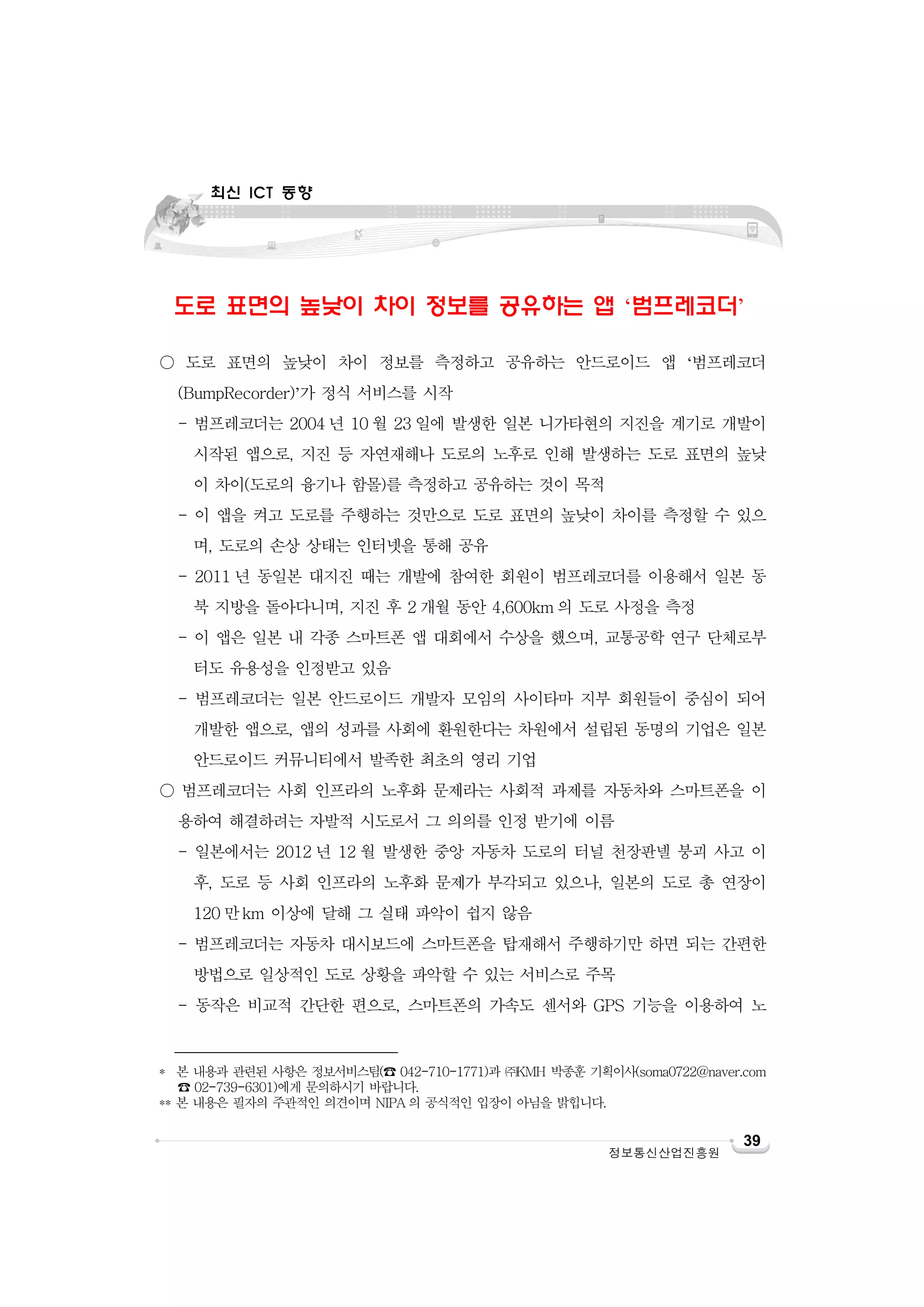 시작된 앱으로, 지진 등 자연재해나 도로의 노후로 인해 발생하는 도로 표면의 높낮