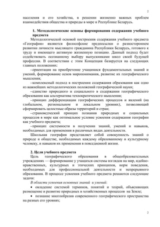 Документ утверждает концепцию учебного предмета «география», направленную на развитие интеллектуального и духовного потенциала учащихся, формирование географического мышления и понимания взаимосвязи общества и природы. Описываются цели, методологические основы и структура образовательного курса, а также акцент на значении географии в условиях глобализации и экологических вызовов. Важным аспектом является подготовка учеников к осознанию профессиональной деятельности и ответственного отношения к окружающей среде.