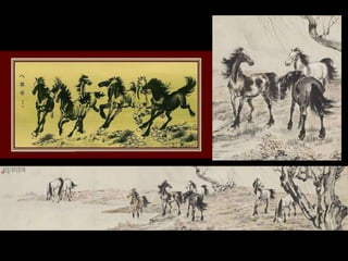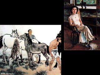 徐悲鴻是中国近现代画坛的杰出大师,生于1895年,经过艰苦磨炼与学习,先后在日本和法国求学,吸收西方艺术的精华并推动中国绘画的改革。他在中国油画领域开创新时代,以其独特的风格和对艺术的深刻理解,培养了大批艺术人才。徐悲鴻的艺术作品融合中西特点,具有强烈的感染力和震撼力,成为近代绘画的重要里程碑。