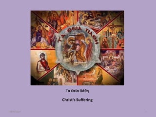 This document is a collection of 10 short passages written in Greek on April 18, 2014 related to Easter. The passages discuss Christ's suffering, the crucifixion, the holy sepulchral, the resurrection, well wishes for a happy Easter, tsourekia bread, nature during Easter time, and Greeks cooking lamb and kokoretsi for the Easter meal.