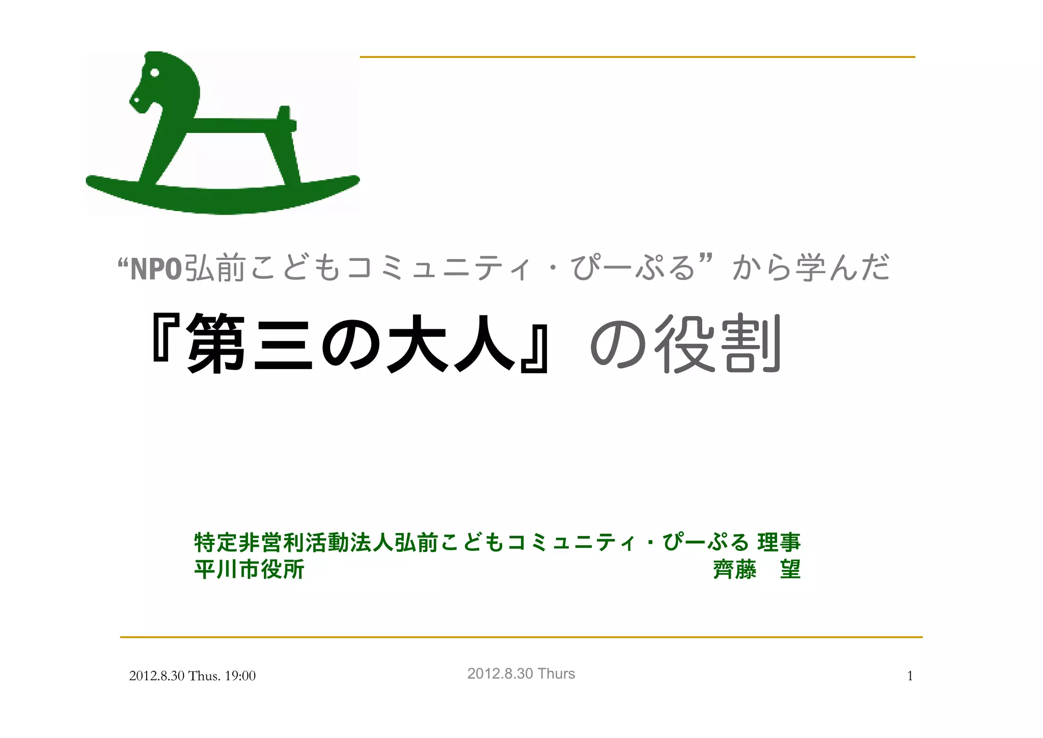9 親でもない、先生でもない、 地域の子どもたちのために、社会のために 自分を活かす力『公共力』を持ち、 共生のカタチを作れる人 身体的 法律的 社会的 経済的 精神的 一般的一般的一般的一般的なななな 大人大人大人大人のののの定義定義定義定義