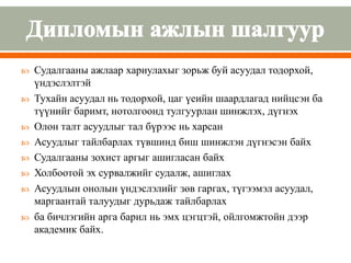 диплом, диссертаци бичих аргачлал