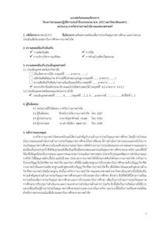 มหาวิทยาลัยนเรศวร หน่วยงาน ภาควิชากายภาพบาบัด คณะสหเวชศาสตร์ 1. รหัสโครงการ สห-02-071 ชื่อโครงการ เตรียมความพร้อมเพื่อการประกันคุณภาพการศึกษา และการตรวจ ประเมินเพื่อรับรองสถาบันการศึกษากายภาพบาบัด 2. ความสอดคล้องกับพันธกิจ การผลิตบัณฑิต การวิจัย การบริการวิชาการแก่สังคม การทานุบารุงศิลปวัฒนธรรม 3. ความสอดคล้องกับประเด็นยุทธศาสตร์ 3.1 ประเด็นยุทธศาสตร์มหาวิทยาลัย เป็นเลิศทางการวิจัย (กลยุทธ์ที่ ........ มาตรการ .........) ผลิตบัณฑิตมีคุณภาพ ทางานได้รับค่าตอบแทนสูง (กลยุทธ์ที่ ........ มาตรการ .........) ความสัมพันธ์กับศิษย์เก่าอย่างเข้มแข็งและยั่งยืน (กลยุทธ์ที่ ........ มาตรการ .........) ระบบบริหารในหลักธรรมาภิบาลและโปร่งใสตรวจสอบได้ (กลยุทธ์ที่ 4.2 มาตรการ 4.2.2 ) 3.2 ประเด็นยุทธศาสตร์ของคณะ/หน่วยงาน (ถ้ามี) ประเด็นยุทธศาสตร์ที่ .............4...........กลยุทธ์ที่ ....1, 2, 9.......มาตรการที่...........-.............ตัวชี้วัดที่ 1, 2 4. ผู้รับผิดชอบ 4.1 หน่วยงานที่รับผิดชอบ ภาควิชากายภาพบาบัด 4.2 ผู้รับผิดชอบ หัวหน้าภาควิชากายภาพบาบัด โทร. 6287 4.3 ผู้ประสานงาน อาจารย์จุฑาลักษณ์ กองสุข โทร. 6342 4.4 ผู้รายงานผล นางสาวจันจิรา พุฒชาวนา โทร. 6289 5. หลักการและเหตุผล ภาควิชากายภาพบาบัดตระหนักและให้ความสาคัญกับงานด้านการประกันคุณภาพการศึกษา โดยมีการกาหนด นโยบายและแผนดาเนินงานด้านการประกันคุณภาพการศึกษาไว้อย่างชัดเจน มีการดาเนินการตามระบบและกลไกในการ ประกันคุณภาพการศึกษาภายในระดับหน่วยงานย่อย โดยการจัดทารายงานการประเมินตนเองรายงานต่อสาธารณชนอย่าง ต่อเนื่องเป็นประจาทุกปี ซึ่งมีวัตถุประสงค์เพื่อเป็นเครื่องมือตรวจสอบและประเมินคุณภาพการศึกษาของภาควิชา และเพื่อให้ ได้มาซึ่งข้อมูลย้อนกลับจากตนเอง และจากคณะกรรมการประเมินการตรวจสอบ นามาปรับปรุงและพัฒนาการดาเนินงานของ ภาควิชา ให้มีคุณภาพยิ่งๆ ขึ้นไป และในปี พ.ศ. 2556 สภากายภาพบาบัดได้ประกาศข้อบังคับสภากายภาพบาบัด ว่าด้วยการ รับรองปริญญาในวิชาชีพกายภาพบาบัด และประกาศให้มีเกณฑ์มาตรฐานการรับรองสถาบันการศึกษาระดับปริญญาวิชาชีพ กายภาพบาบัดและเกณฑ์มาตรฐานหลักสูตรระดับปริญญาวิชาชีพกายภาพบาบัดขึ้น เพื่อให้สถาบันและหลักสูตรทางด้าน วิชาชีพกายภาพบาบัดมีมาตรฐาน ดังนั้นภาควิชากายภาพบาบัด คณะสหเวชศาสตร์ มหาวิทยาลัยนเรศวรจึงได้เล็งเห็น ความสาคัญของงานด้านการประกันคุณภาพการศึกษาและการรับรองสถาบันการศึกษา ดังกล่าว จึงได้จัดให้มีโครงการเตรียม ความพร้อมเพื่อการประกันคุณภาพการศึกษาและการรับรองสถาบันการศึกษา เพื่อเป็นการนาผลการประกันคุณภาพ การศึกษา