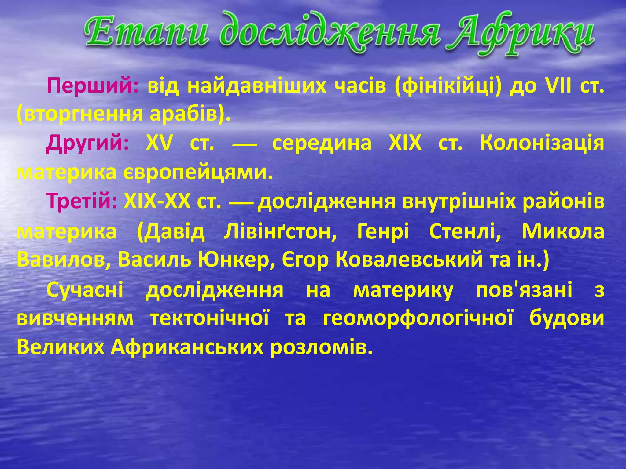 материка (Давід Лівінґстон, Генрі Стенлі, Микола