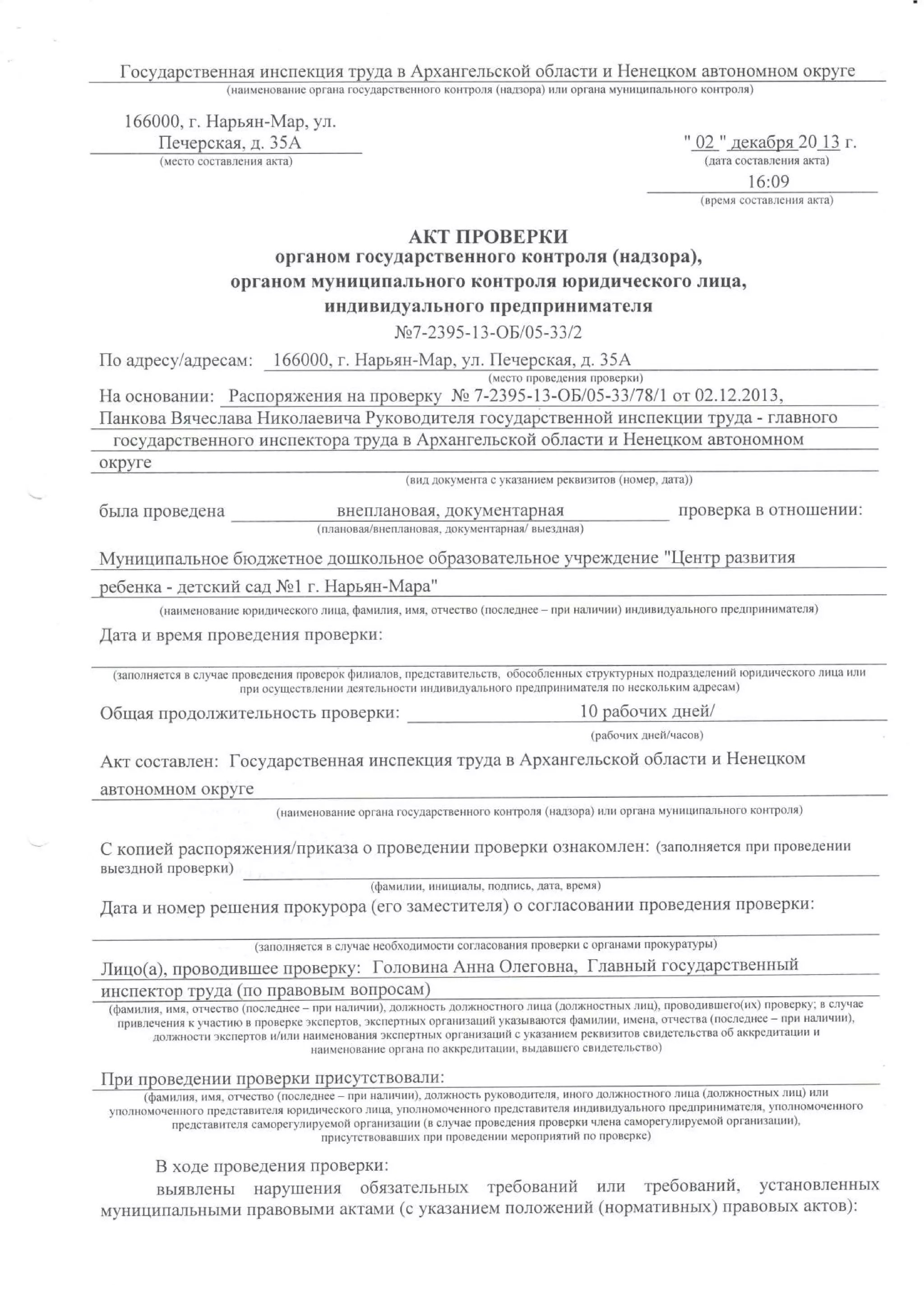 акт проверки