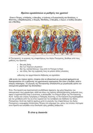 Πρώτοι ιεραπόστολοι οιμαθητές του χριστού