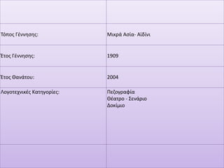 Τόπος Γέννησης: ΜικράΑσία- Αϊδίνι