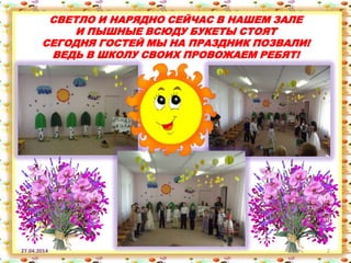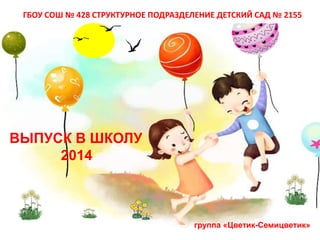 Документ посвящен выпускному празднику детского сада №2155, посвященному подготовке детей к школе. В тексте содержатся поздравительные пожелания и напоминания о важности этого этапа в жизни детей. Событие наполнено радостью, играми и важными посланиями о дружбе и преодолении трудностей.