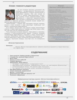 Журнал о франчайзинге освещает развитие fashion-ритейла в Казахстане и подчеркивает важность франчайзинга для экономической устойчивости страны. В документе представлены статистические данные, тенденции и прогнозы роста рынка, а также требования и предпочтения потенциальных франчайзи. Кроме того, журнал анонсирует информацию о будущих выпусках и призывает сообщество франчайзинга к активному обмену опытом и знаниями.