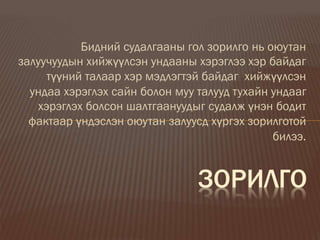 фактаар үндэслэн оюутан залуусд хүргэх зорилготой