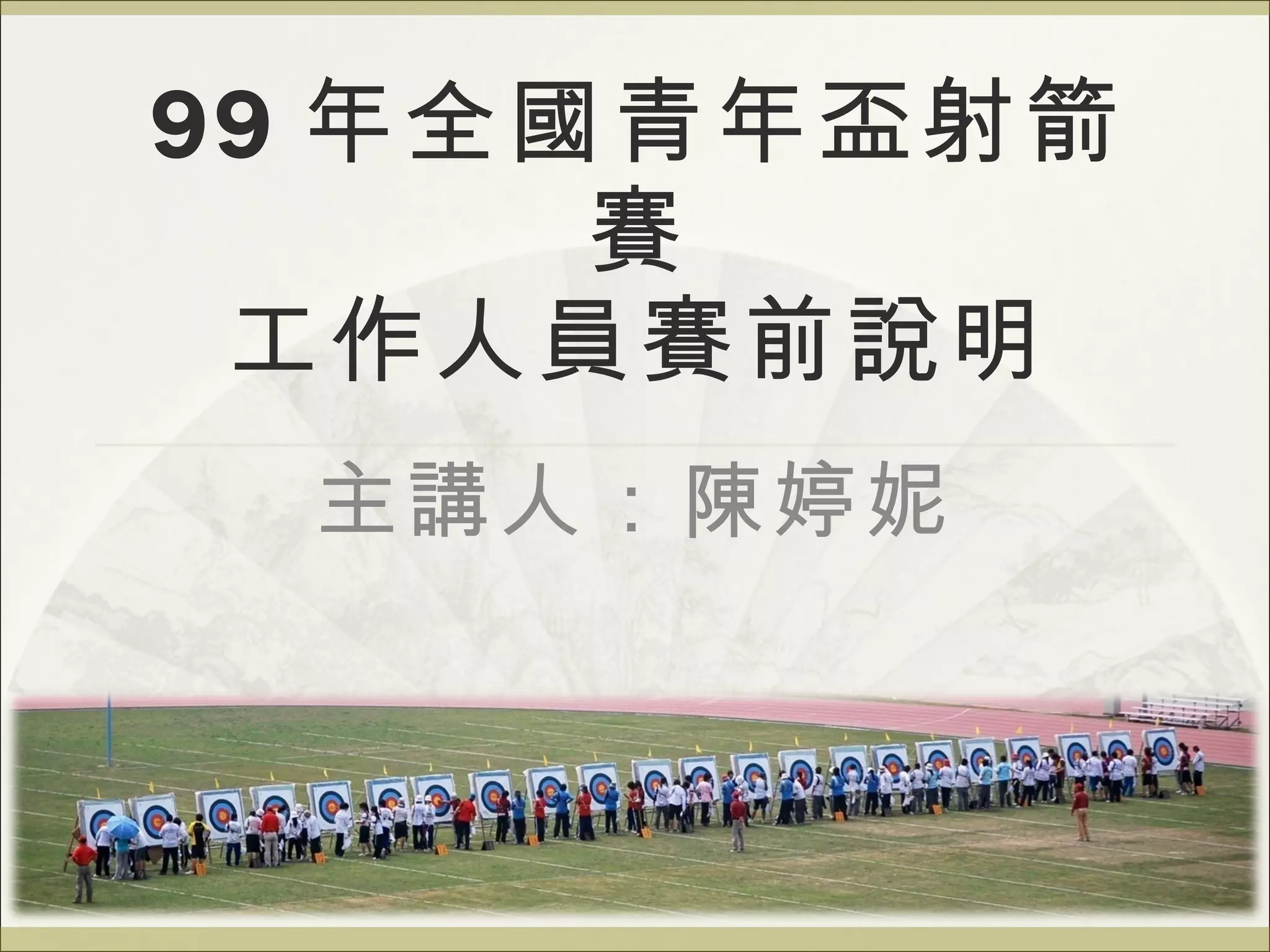 本文件详细描述了99年全国青年盃射箭赛的工作人员赛前说明,包括比赛日程、各部门的职责、人员分配和安全注意事项等。主要安排包括比赛的准备、进行和结束期间的各项职责,确保赛事的顺利进行。文档也强调了工作人员在赛事中的专业态度和紧急情况的处理流程。