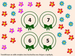 Στολίζω κάθε σπίτιμε ένα μαγιάτικο στεφάνι. Πόσα στεφάνια έβαλα; Πληκτρολογώ τον αριθμό στο τετράγωνο.