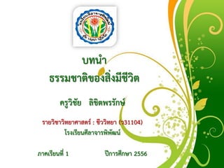 1 Free Powerpoint Templates บทนำ ธรรมชำติของสิ่งมีชีวิต ครูวิชัย ลิขิตพรรักษ์ รำยวิชำวิทยำศำสตร์ : ชีววิทยำ (ว31104) โรงเรียนศีลำจำรพิพัฒน์ ภำคเรียนที่ 1 ปีกำรศึกษำ 2556