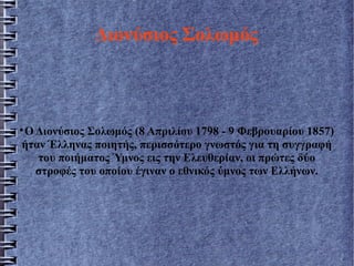στροφές του οποίου έγιναν ο εθνικός ύμνος των Ελλήνων.