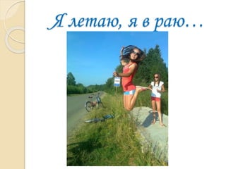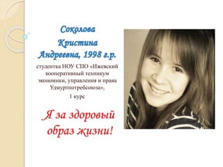 Документ представляет собой креативное самовыражение студентки, которая поддерживает здоровый образ жизни и активно участвует в различных мероприятиях. Она делится своими увлечениями, такими как пение и катание на роликах, а также отмечает радость от летнего времени. В тексте присутствует позитивный настрой и благодарность за внимание.