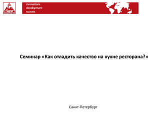 Семинар в Санкт-Петербурге посвящен отладке качества на кухне ресторана и мотивации поваров через материальные и нематериальные бонусы. Темы включают проблемы с персоналом, контроль качества, методы рекрутинга и адаптации, а также важность наставничества и четко прописанных стандартов. Участники также обсудят систему грейдов для поваров и форматы вознаграждений за профессиональные достижения.