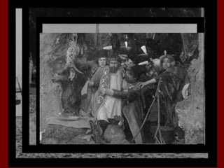 Документ описывает раннюю историю отечественного кино в России, начиная с его возникновения в начале 20 века и первых кинематографических аппаратов. Упоминаются важные события и фигуры, включая создание первого игрового фильма и развитие киноиндустрии, а также ограничения и цензурные практики того времени. Отмечены значимые режиссеры и фильмы, которые стали основоположниками российского кинематографа.