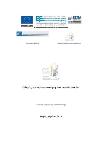 Δπιστημονικός Φορέας Οδεγίεο γηα ηελ πηζηνπνίεζε ησλ εθπαηδεπηηθώλ Διεύθυνση Επιμόρφωσης & Πιστοποίησης Αζήλα, Απξίιηνο 2013
