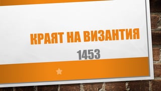1453 г. и превръщането