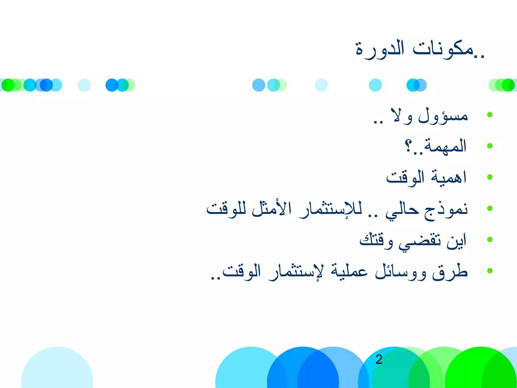 يتناول الوثيقة أهمية إدارة الوقت وكيفية استثماره بفعالية لتحقيق الأهداف الشخصية والدراسية والمهنية. يشدد على ضرورة التفكير في كيفية قضاء الوقت واستخدامه بالشكل الأمثل لتجنب ضياع الفرص وضياع الوقت. كما يسلط الضوء على تقنيات التخطيط والتنظيم لتحقيق نتائج إيجابية في الحياة.
