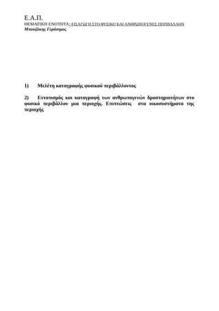 ΘΕΜΑΤΙΚΗ ΕΝΟΤΗΤΑ: ΕΙΣΑΓΩΓΗΣΤΟ ΦΥΣΙΚΟ ΚΑΙ ΑΝΘΡΩΠΟΓΕΝΕΣ ΠΕΡΙΒΑΛΛΟΝ