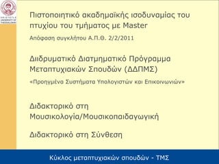 •Κατοχή άλλωνμεταπτυχιακών τίτλων.
