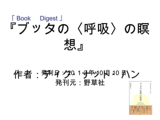 『ブッタの〈呼吸〉の瞑想』 作者:ティク・ナット・ハン 発刊日:2012年10月10日 発刊元:野草社 「Book Digest」