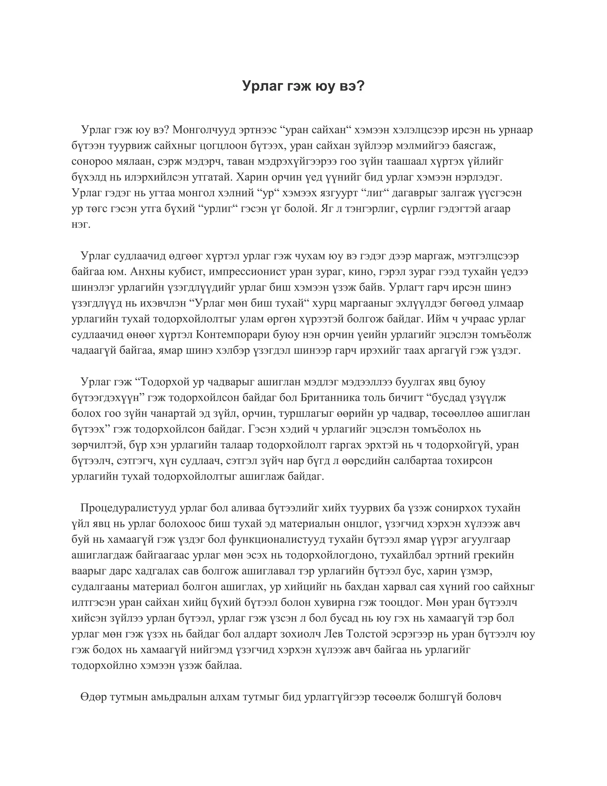 урлагийн тухай тодорхойлолтыг ашиглаж байдаг.