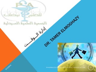 The document discusses various time management techniques used in pharmaceutical scientific associations. It describes the FIT, POSEC, Eisenhower Method and GTD approaches. FIT prioritizes tasks by importance and time. POSEC focuses on organizing, streamlining, economizing and contributing effectively. The Eisenhower Method categorizes tasks as important/not important and urgent/not urgent. GTD (Getting Things Done) involves capturing all tasks, organizing them and reviewing regularly. The document provides details on each technique and suggests they can help individuals and organizations work more efficiently.