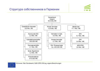 Документ рассматривает различные пути решения жилищной проблемы в Германии, включая дотации для собственников и арендаторов, а также участие населения в жилищных реформах. Обсуждаются структуры собственников, налоговые льготы и механизмы государственного субсидирования для строительства доступного жилья. Также поднимаются вопросы социальной защиты арендаторов и предоставления пособий на жильё для облегчения финансовой нагрузки на домохозяйства с низкими доходами.