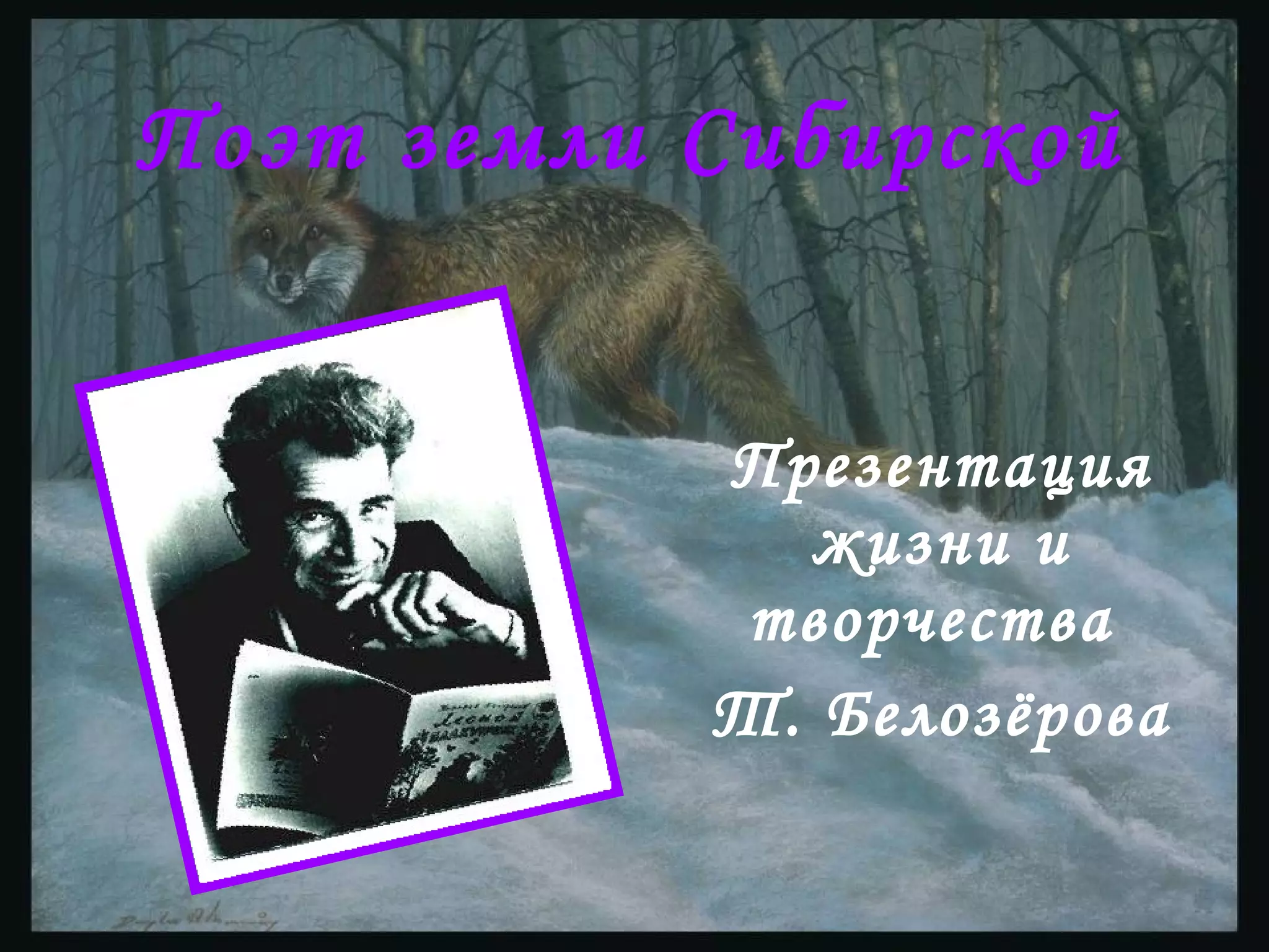 Документ описывает жизнь и творчество поэта Тимофея Максимовича Белозёрова, родившегося в 1929 году в Курганской области и ставшего известным благодаря своим книгам для детей и взрослой публики. Белозёров, член Союза писателей СССР и заслуженный работник культуры, опубликовал 56 книг и получил ряд наград за свои достижения в литературе. Он умер в 1986 году в Омске, где ему установлены памятные знаки и названы улицы.