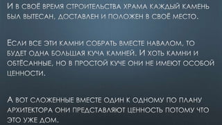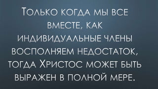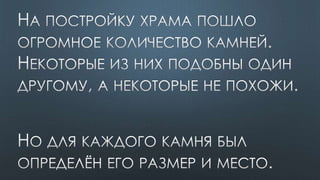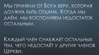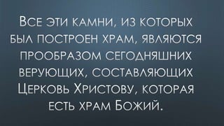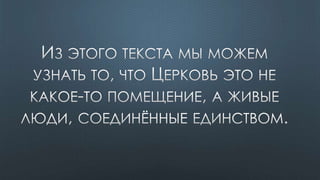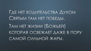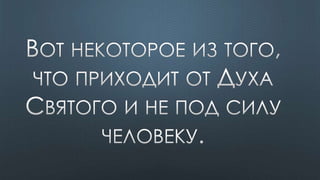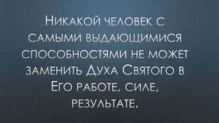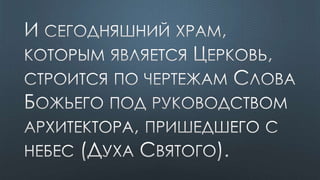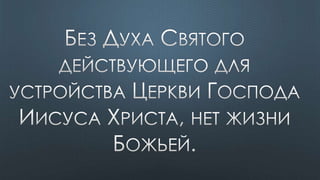 Документ содержит различные библейские цитаты, касающиеся темы Святого Духа и его роли в жизни верующих. Подчеркивается важность единства веры и духовной помощи, которую предоставляет Дух Святой. Также упоминается, что верующие являются храмом для Святого Духа и должны жить согласно его ведению.