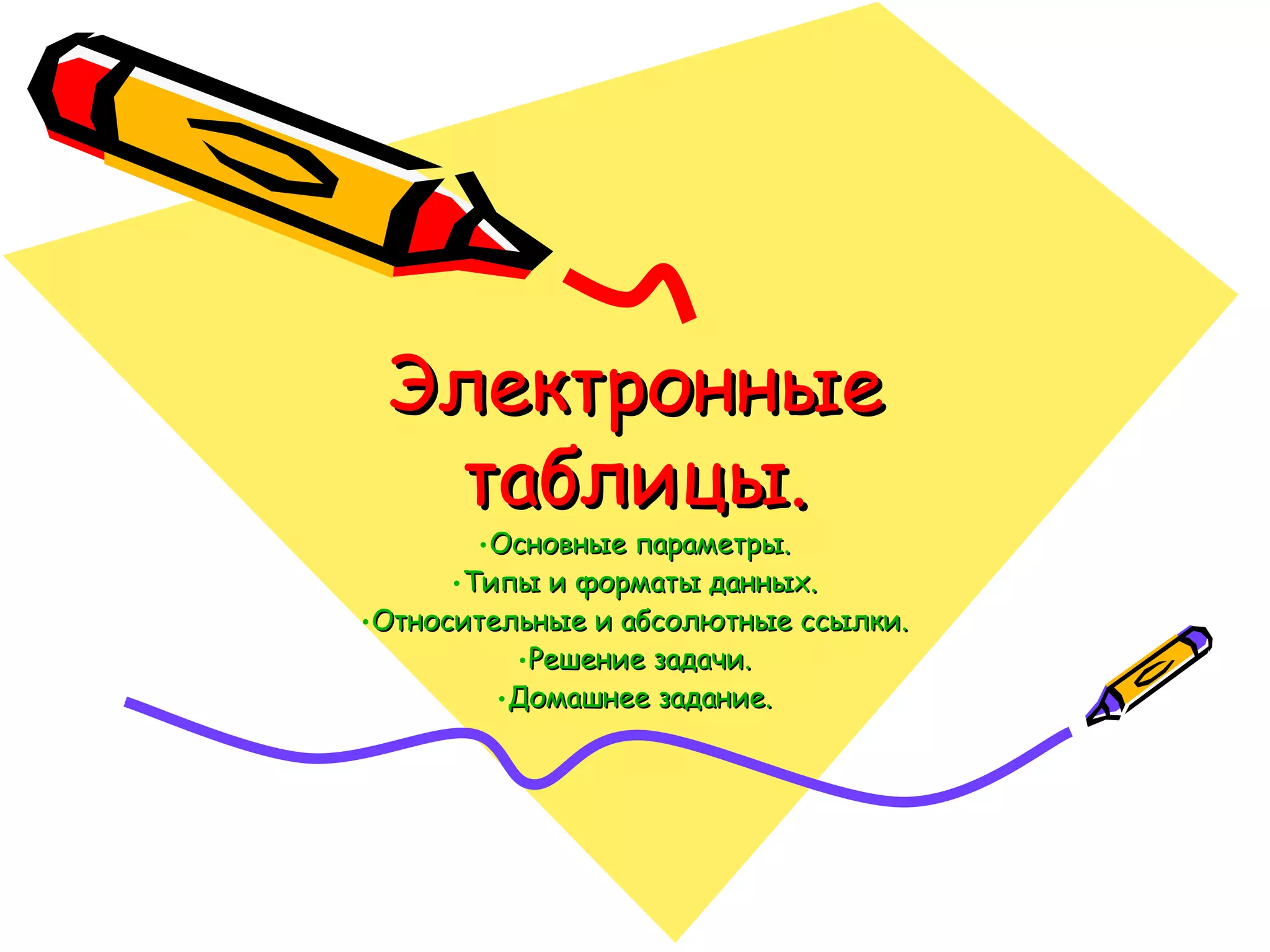 Документ посвящен основам работы с электронными таблицами Microsoft Excel, включая типы данных, форматы и ссылки. Описываются методы форматирования данных и различия между относительными и абсолютными ссылками. Включает задание на расчет стоимости компьютерных комплектующих и создание таблицы для учета расходов.
