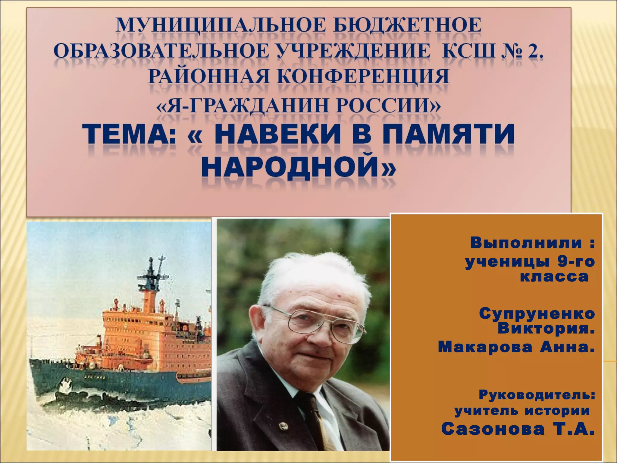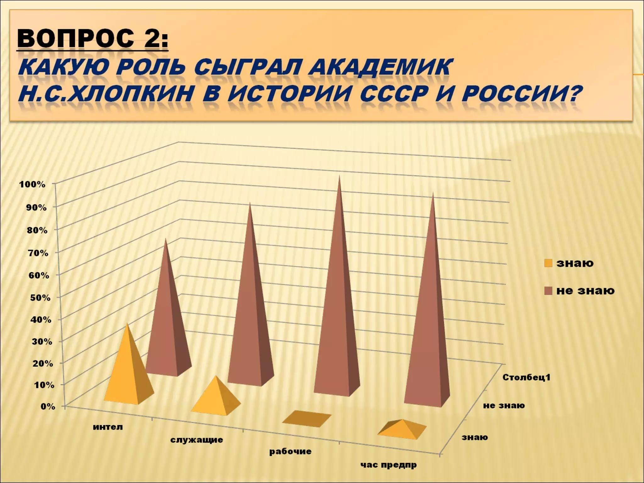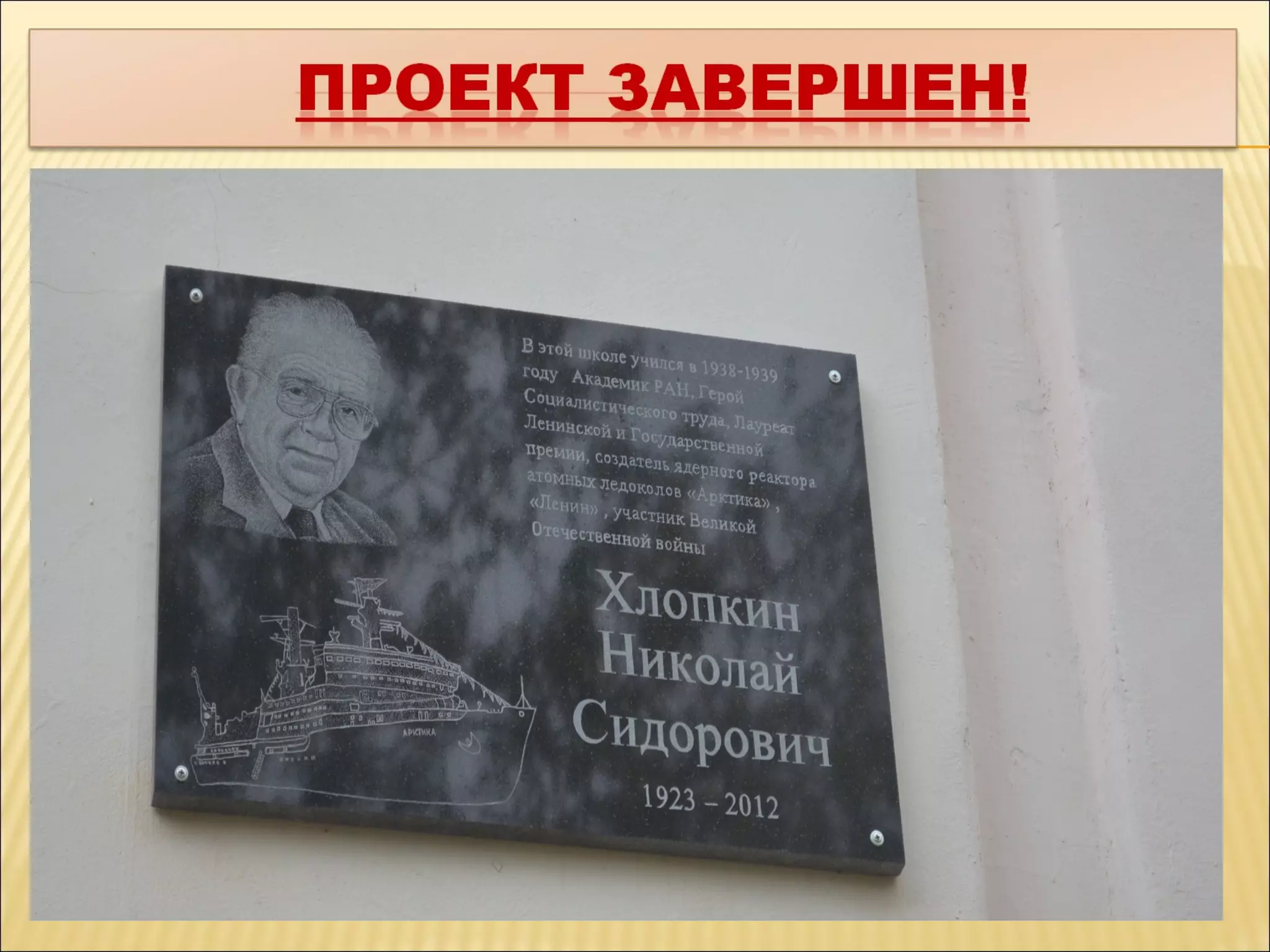 Ученицы 9-го класса провели социологический опрос в мае 2013 года с 50 респондентами различного возраста и социального статуса, чтобы выяснить их осведомленность о выдающемся земляке н.с. Хлопкине. Опрос выявил, что большинство респондентов мало информированы о его жизни и вкладе в ядерную энергетику. В результате работы был предложен проект установки памятной доски в честь академика на фасаде школы.