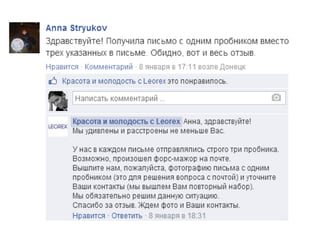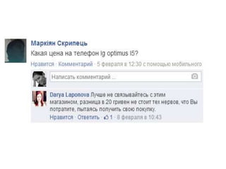 Документ описывает важность эффективной работы с отзывами в социальных сетях, подчеркивая, что более 70% покупателей доверяют мнению других потребителей. Он также предлагает стратегии реагирования на отзывы, такие как понимание источника, извинения и ведение дискуссии. В конце документа указаны контактные данные для обратной связи.