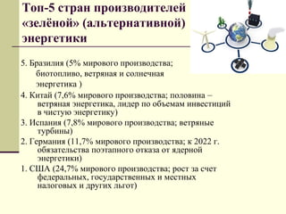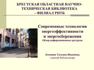 Документ представляет обзор современных технологий в области энергоэффективности и энергосбережения, включая статистику по странам-производителям альтернативной энергетики и информацию о возобновляемых источниках энергии в Беларуси. Также рассматриваются информационные ресурсы и нормативные акты в данной области, а также уникальные примеры энергоэффективных объектов. В завершение содержится руководство по проведению энергоаудита в домашних условиях.
