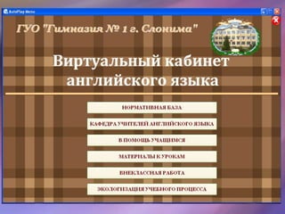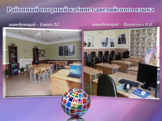 Документ описывает деятельность районного опорного кабинета английского языка в гимназии No 1 г. Слонима, цель которого состоит в формировании коммуникативных компетенций у учащихся и поддержке учителей. Упоминается участие в международных проектах, таких как программа с плюшевым медвежонком Генри, и планируется развитие кабинета через внедрение современных технологий и организацию мастер-классов. Основное внимание уделяется воспитанию уважения к иноязычной культуре и созданию методических материалов для педагогов.