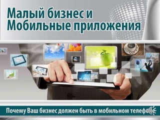 Документ описывает стратегии для малых бизнесов по увеличению продаж и привлечению клиентов через мобильные приложения. Участники бесплатного онлайн-семинара узнают о пяти методах увеличения продаж и семи технологиях продвижения. Акцентируется внимание на важности мобильной доступности для успешного привлечения и удержания клиентов в современном рынке.