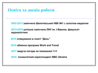 ірина ковалькова 1. 2. Освіта та досвід роботи