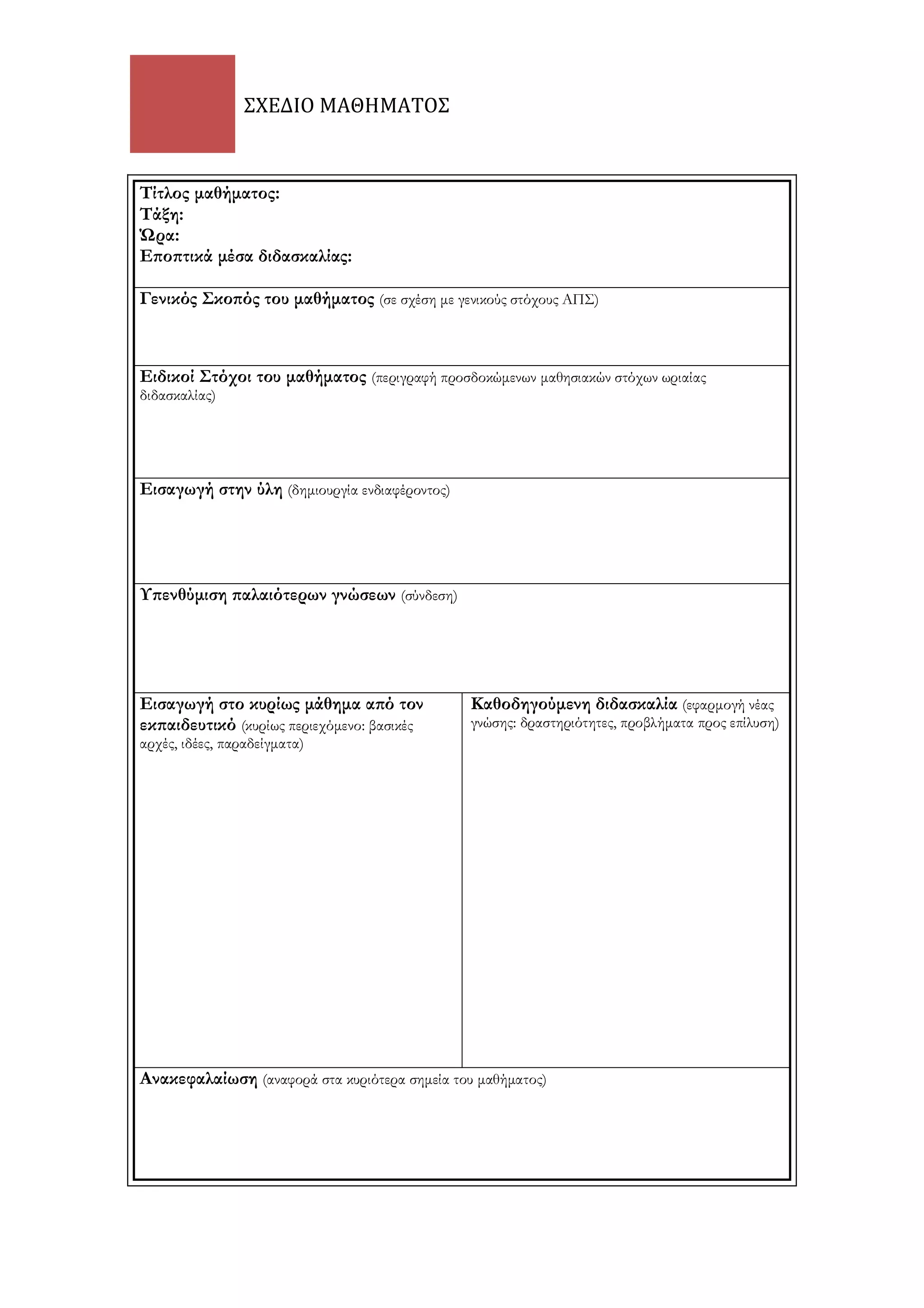 Πρότυπη φόρμα σχεδίου μαθήματος- απλή