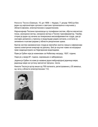 Никола Тесла (Смиљан,10. јул 1856 — Њујорк, 7. јануар 1943) је био