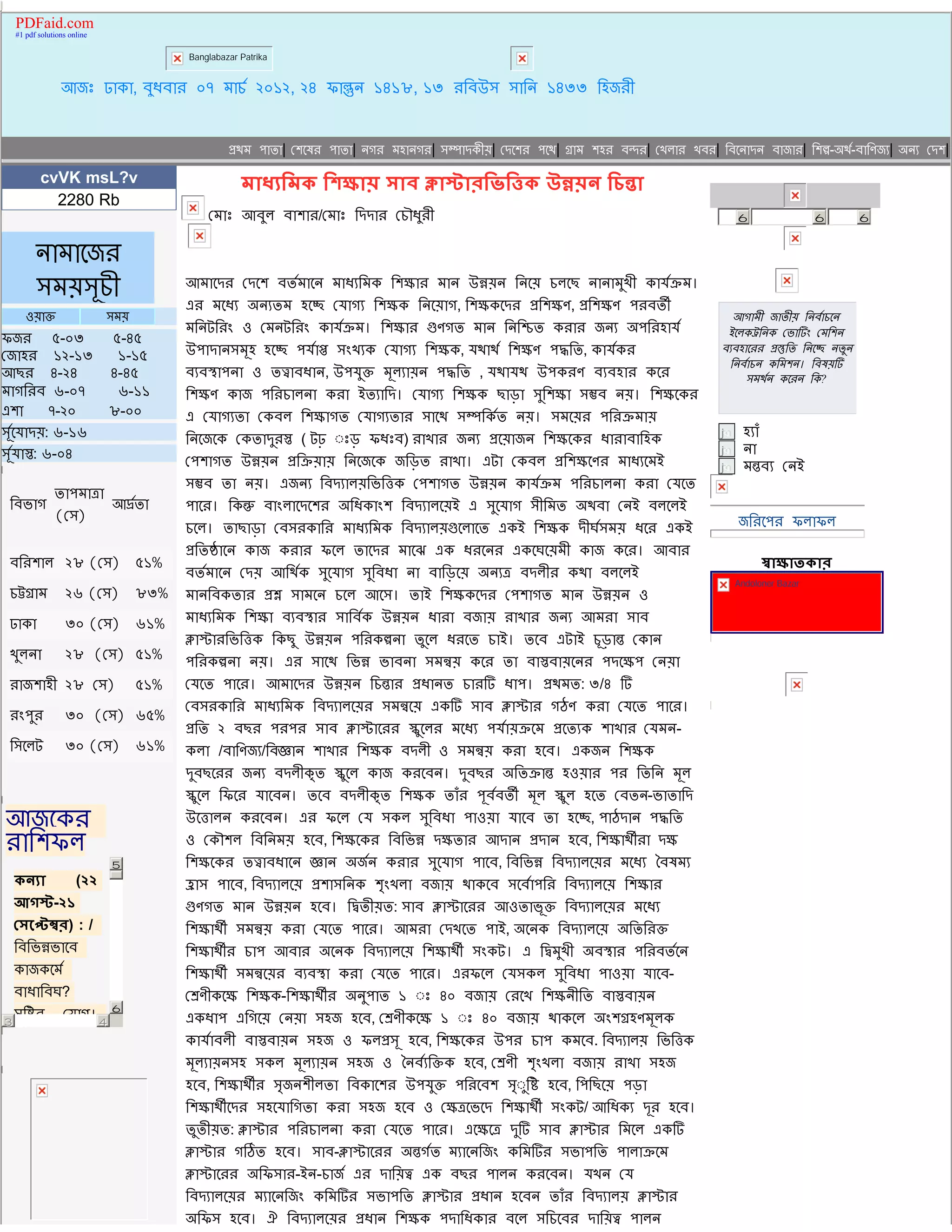 মাধ্যমিক শিক্ষায় সাব ক্লাস্টারভিত্তিক উন্নয়ন চিন্তা- মো:আবুল বাশার, সহকারী অধ্যাপক, ভূগোল, সরকারি টিচার্স ট্রেনিং কলেজ; মো: দিদার চৌধুরী, সহকারী অধ্যাপক, পদার্থবিদ্যা, সরকারি টিচার্স ট্রেনিং কলেজ, সিলেট: দৈনিক বাংলা বাজার পত্রিকা; ৭ মার্চ ২০১২ - Md. Abul Bashar, Assistant Professor, Geography, Govt. Teachers' Training College: