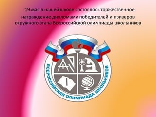 19 мая в школе прошло торжественное награждение дипломами победителей и призеров окружного этапа всероссийской олимпиады школьников.