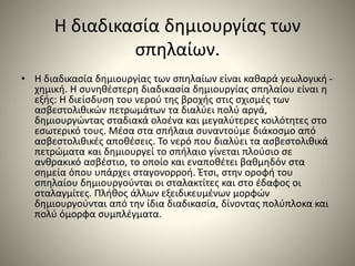 • Η διαδικασία δημιουργίας των σπηλαίων είναι καθαρά γεωλογική -