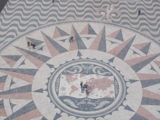 Το πλακόστρωτο δάπεδο, μπροστά στο Μνημείο των Ανακαλύψεων,