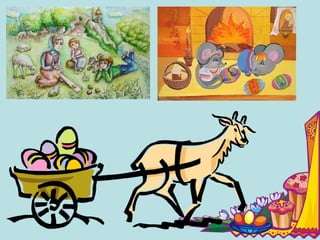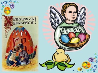 Документ посвящён празднованию Пасхи и связанным с ним традициям, включая вербное воскресенье, освящение вербы, празднование и символику Пасхи. Пасха олицетворяет победу жизни над смертью через воскресение Иисуса Христа и включает обычаи, такие как окрашивание яиц и праздничные пиршества. Текст также упоминает европейские традиции, связанные с Пасхой, включая пасхального кролика и пасхальные ярмарки.