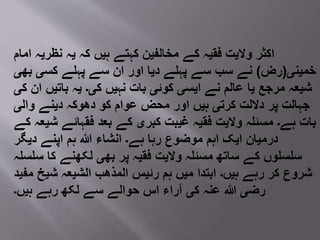 کہ ہیں کہتے مخالفین کے فقیہ والیت اکثر خمینی(رض)بھی کسی پہلے سے ان اور دیا پہلے سے سب نے ک ان باتیں یہ کی۔ نہیں بات کوئی ایسی نے عالم یا مرجع شیعہی والی دینے دھوکہ کو عوام محض اور ہیں کرتی داللت پر جہالت شیعہ فقہائے بعد کے کبری غیبت فقیہ والیت مسئلہ ہے۔ باتکے دیگر اپنے ہم ہللا انشاء ہے۔ رہا موضوع اہم ایک درمیان سلسل کا لکھنے بھی پر فقیہ والیت مسئلہ ساتھ کے سلسلوںہ مفید شیخ الشیعہ المذھب رئیس ہم میں ابتدا ہیں۔ رہے کر شروع ہیں۔ رہے لکھ سے حوالے اس آراء کی عنہ ہللا رضی