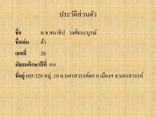 ประวัติส่วนตัว ชื่อ นางาสาว นันท์นภัส โสไกร PPT