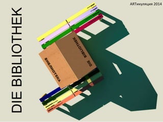 Документ описывает проект мини-библиотеки, посвященной немецкой литературе, с прозрачными стенами, позволяющими видеть книги внутри. Арт-объект собирает произведения немецких писателей на оригинальном языке и в переводе на русский. Библиотека защищает книги от внешних воздействий и оформлена в виде лавочек, напоминающих корешки книг.
