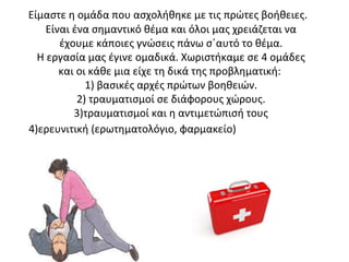 Είμαστε η ομάδαπου ασχολήθηκε με τις πρώτες βοήθειες.